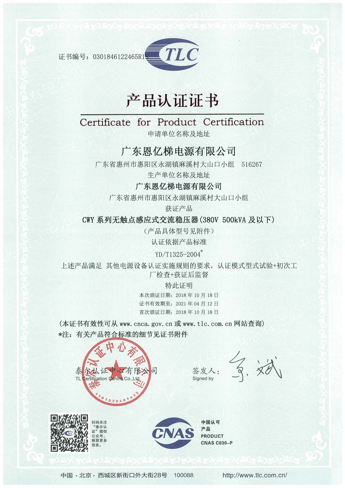 泰爾認證(無觸點感應式交流穩(wěn)壓器)