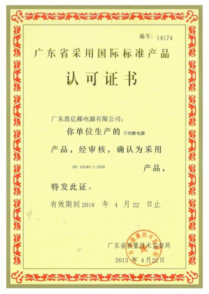 廣東省采用國際標準產品認可證書