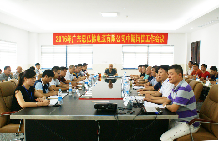 創新科技,領跑未來。7月25日-27日,2016年廣東恩億梯電源有限公司中期銷售會議在惠州總部大廈召開,出席會議的有恩億梯董事長何江民先生、全國區域分公司經理,恩億梯研發、生產、品質、財務、采購、物控、認證以及客戶服務等部門負責人參與了旁聽,會議由營銷總監崔紹杰先生主持。會議總結了2016上半年恩億梯在科技創新、產品研發、市場拓展等方面的工作成果,肯定了恩億梯在交通、廣電等優勢行業取得的非凡業績,并進一步部署2016下半年發展規劃及營銷工作策略,提升創新能力和品牌實力。